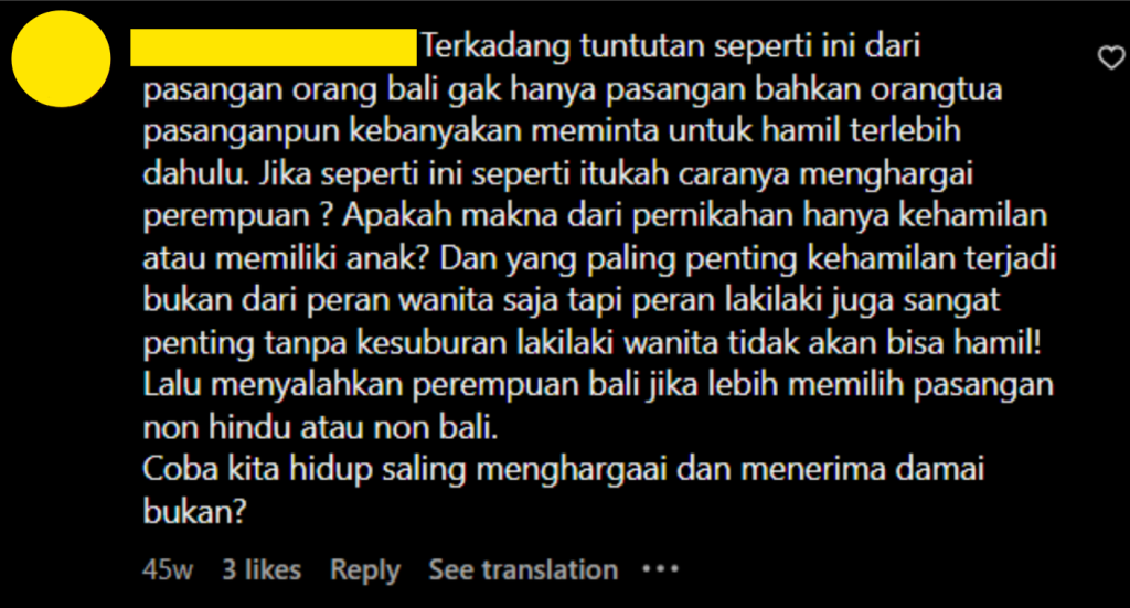 Ini terjadi karena adanya budaya patriarki yang kuat dalam lingkungan masyarakat Bali di mana laki-laki memegang peranan lebih dominan, sementara perempuan sering dilihat hanya sebagai pembawa keturunan. Akibatnya, para perempuan yang belum juga hamil setelah menikah sering mendapat stigma negatif di masyarakat.