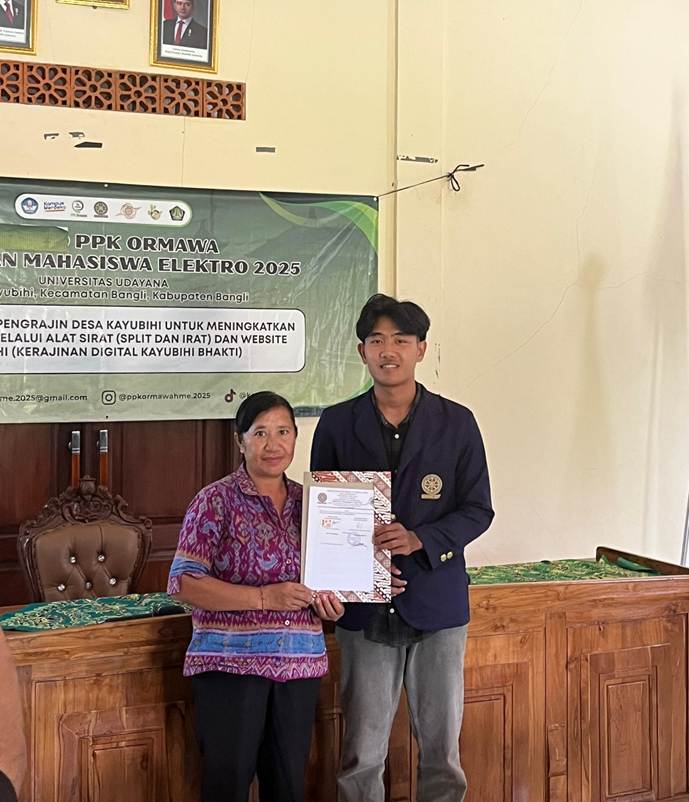 Bangli, Kayubihi – Di tengah era digital yang berkembang pesat, kebutuhan akan akses informasi yang cepat, akurat, dan mudah diakses menjadi sangat penting, termasuk dalam sektor ekonomi dan pemasaran produk lokal. Menyadari pentingnya transformasi digital tersebut, Tim Program Penguatan Kapasitas Organisasi Kemahasiswaan (PPK ORMAWA) dari Himpunan Mahasiswa Elektro (HME) Universitas Udayana (UNUD) tahun 2025 telah resmi meluncurkan sebuah platform digital berbasis website yang diberi nama KEDIBIHI (Kerajinan Digital Kayubihi Bhakti).